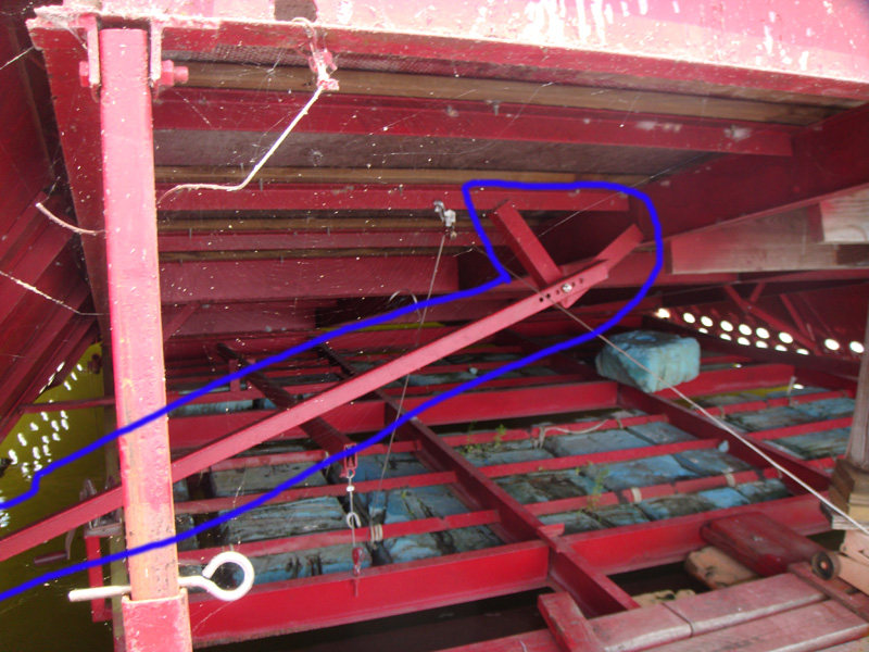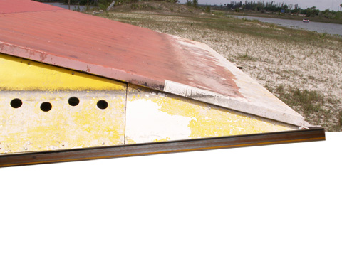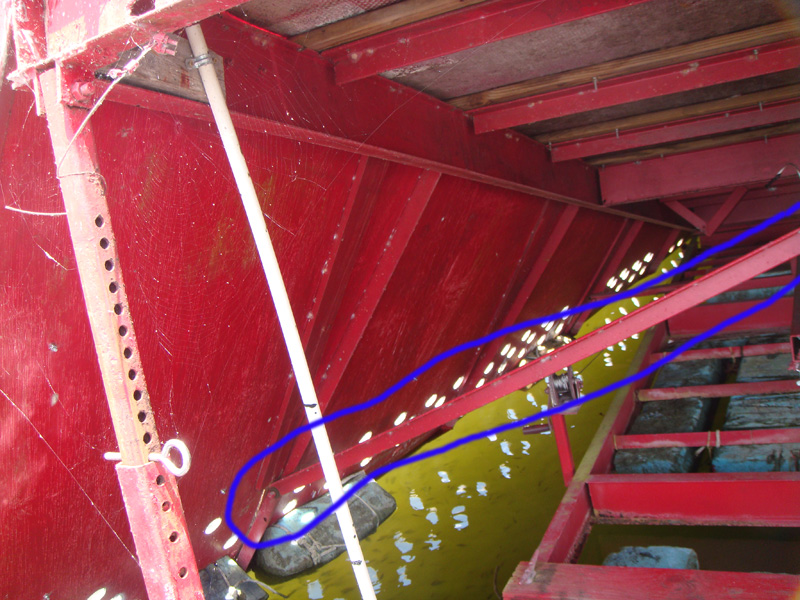 2. Mark each of the 2” angle iron where the side curtains ended at below the water level. Cut each one off 3” past the end of the side curtain panels ended that will allow you to weld the 3 “ channel down the bottom length of the side curtains
