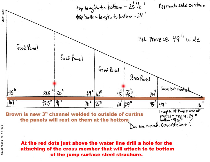 You can then use some angle iron to bolt the jump side curtain out at the correct angle.